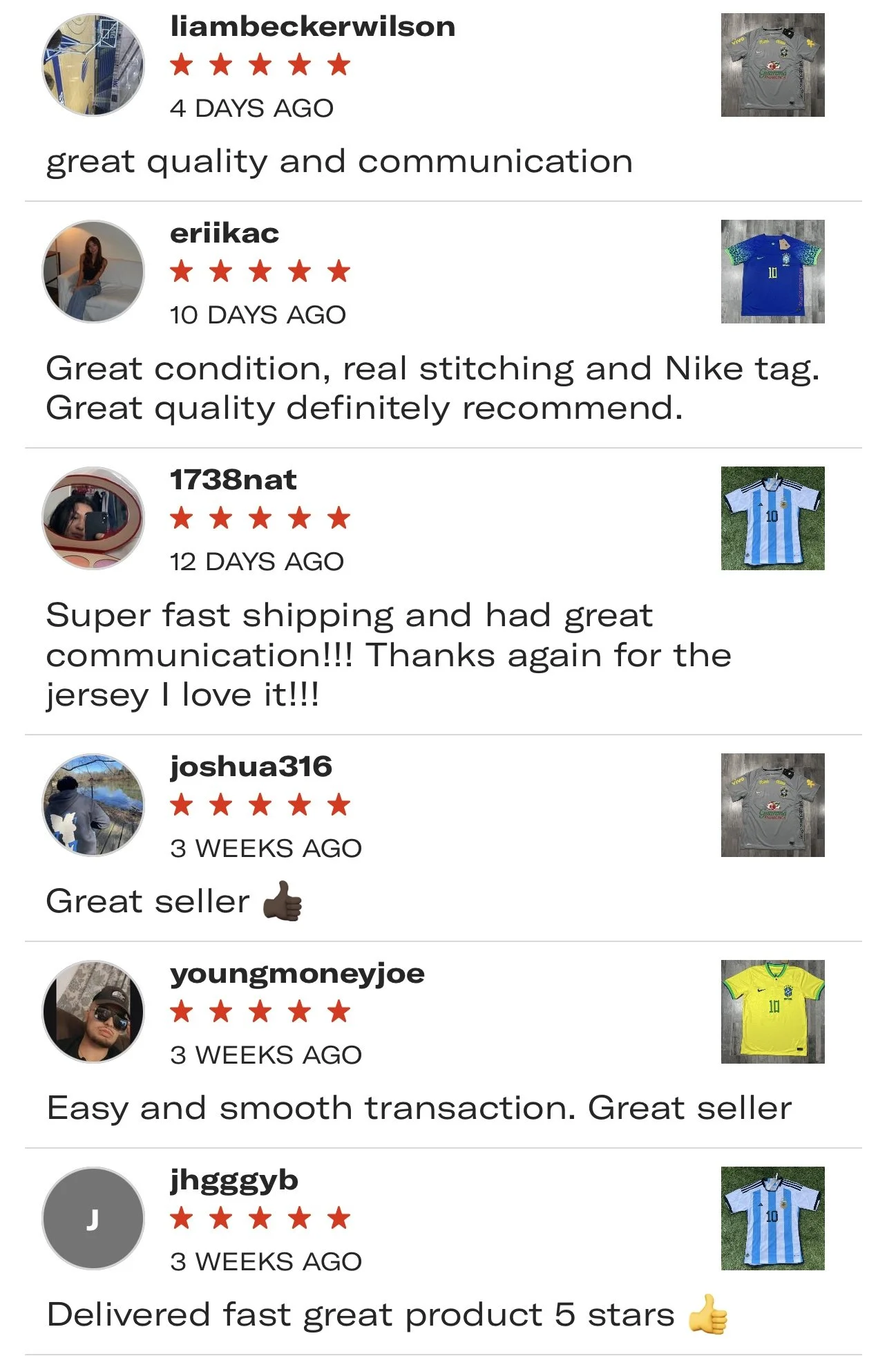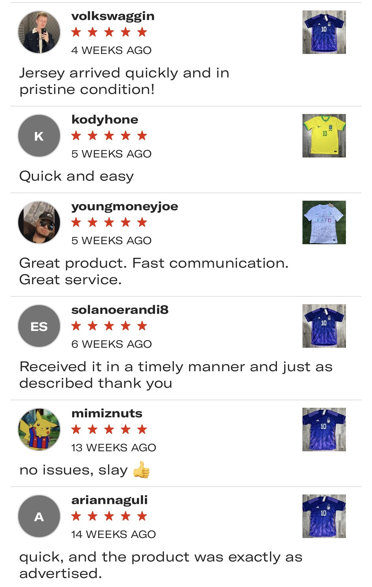 “Recieved the jersey today, very good quality, thank you so much 🙏🏼 will definitely buy more jerseys with you”